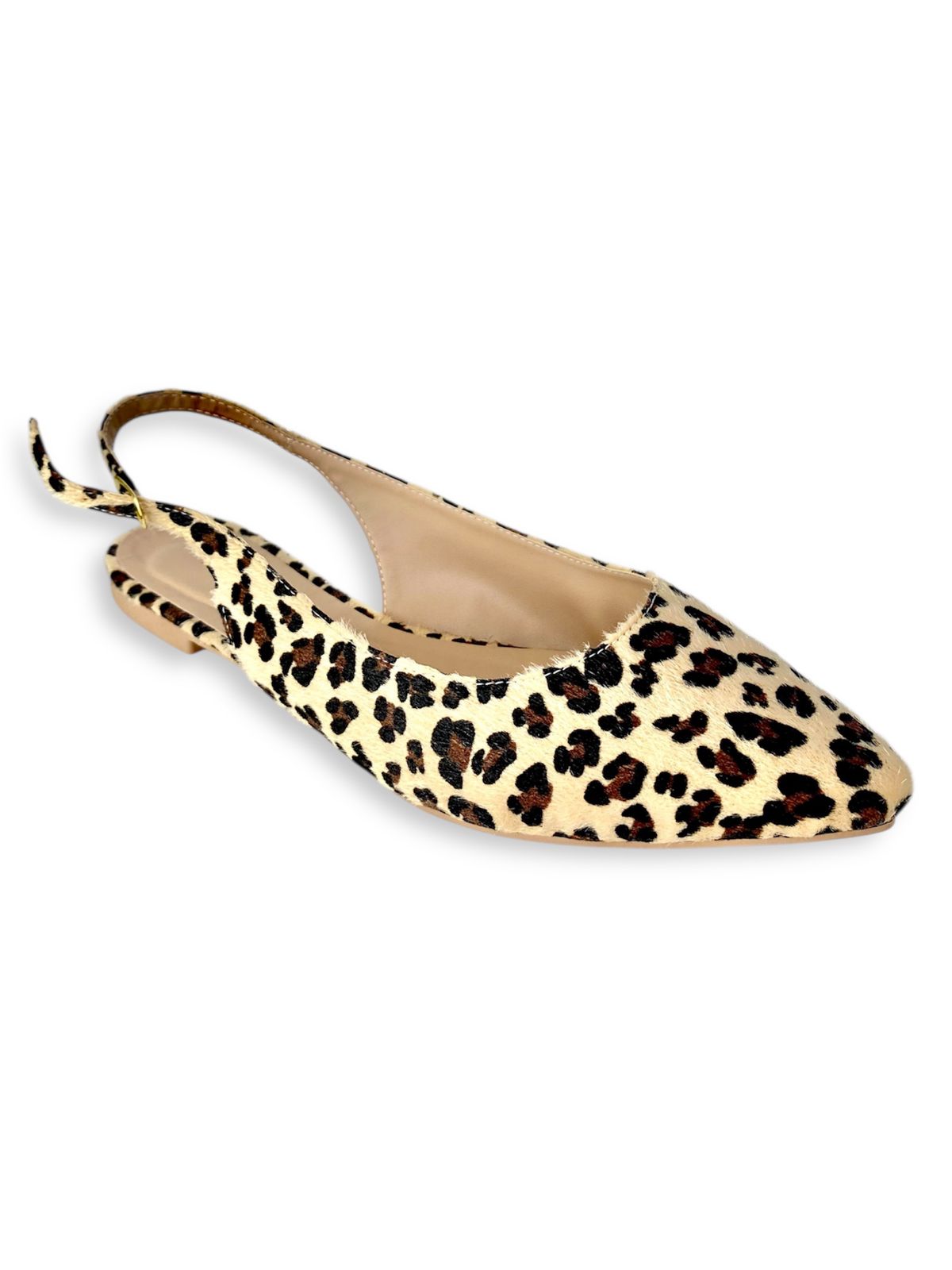 Slingback de bico fino em estampa animal print, perfeito para quem ama estilo sem abrir mão do conforto.