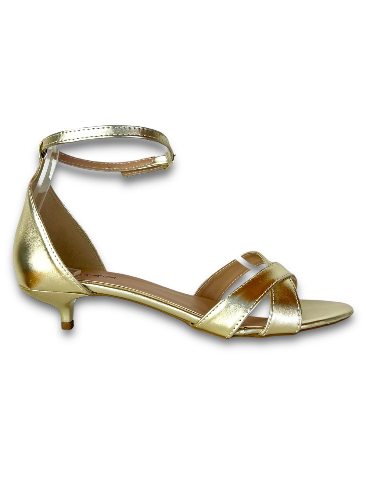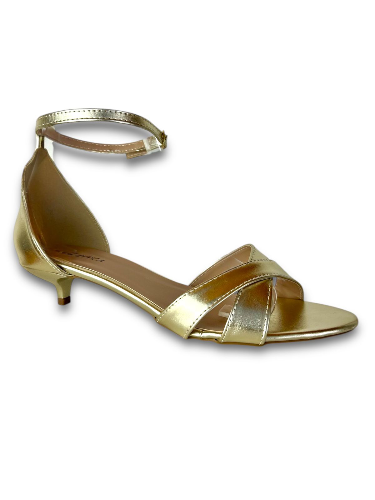 Sandália dourada feminina, com salto fino de 3cm, elegante e sofisticada. Desenvolvida para numeração especial do 41 ao 44, oferece conforto e estilo, ideal para looks formais, eventos ou ocasiões que pedem charme e requinte.